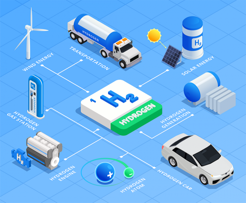 Production and distribution of hydrogen: to increase the cost competitiveness of fuel cells, we’ll need to invest in the scale-up of production and distribution of renewable green hydrogen from electrolysis.